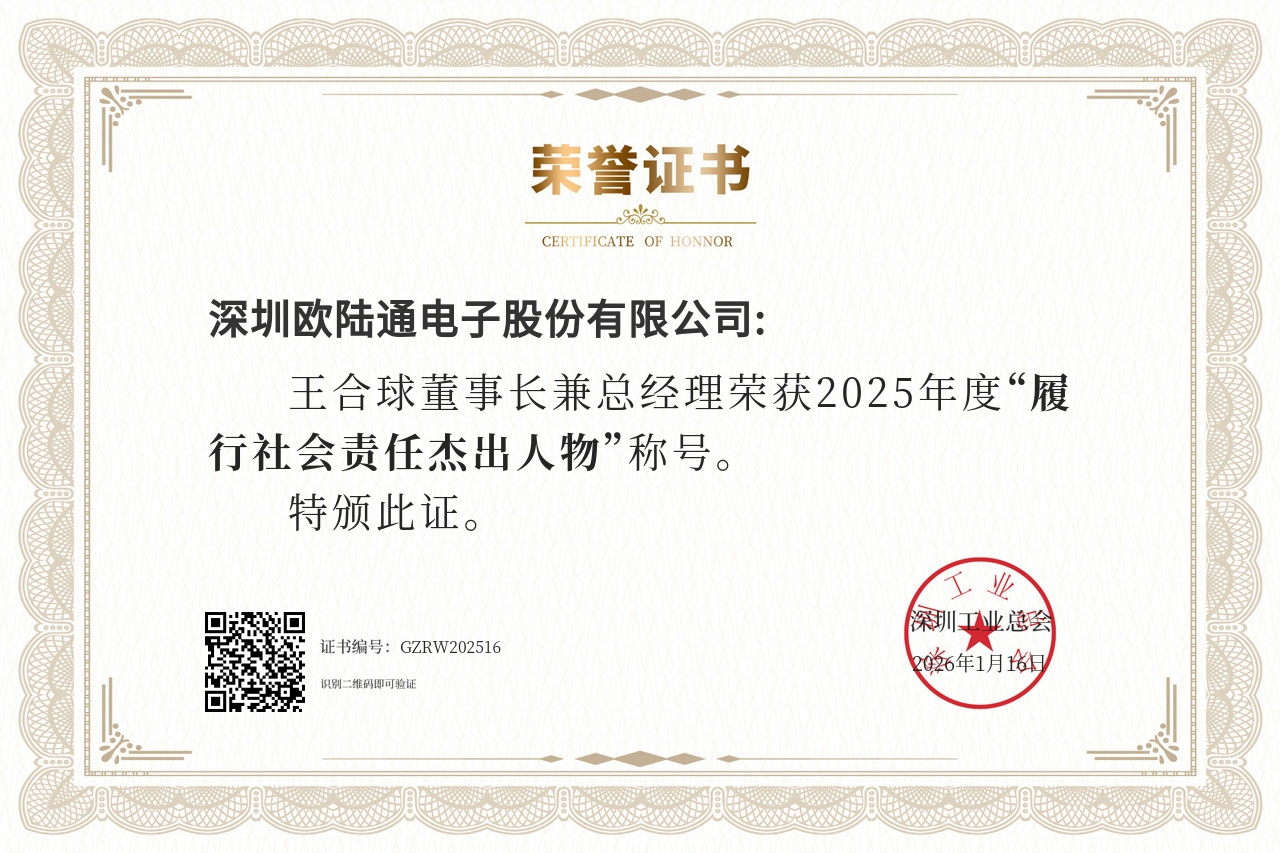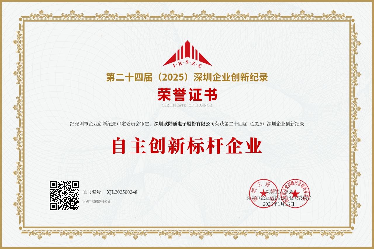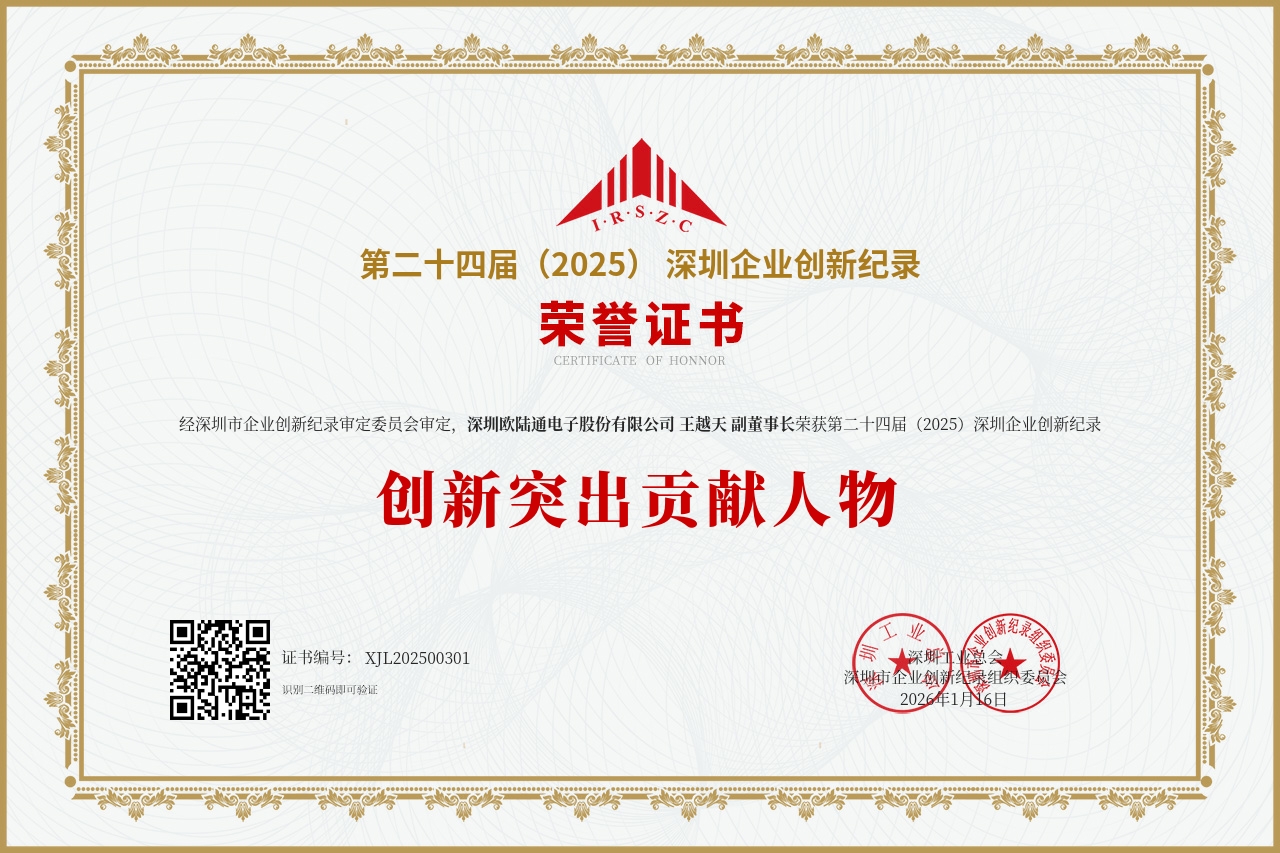凭借在技术创新、区域产业引领、社会责任践行等维度的综合表现,欧陆通一举斩获九项大奖。欧陆通入选“2025粤港澳大湾区企业创新力榜单-创新成就榜”,荣获“深圳工匠培育示范单位”、“2025年度履行社会责任杰出企业”、“第二十四届深圳企业创新纪录-自主创新标杆企业”奖以及两项“第二十四届深圳企业创新(中国)纪录”;欧陆通董事长兼总经理王合球先生,荣获“2025年度履行社会责任杰出人物”;欧陆通副董事长王越天先生,入选“2025粤港澳大湾区企业创新力榜单-创新杰出人物榜”,荣获“第二十四届深圳企业创新纪录-创新突出贡献人物”。
